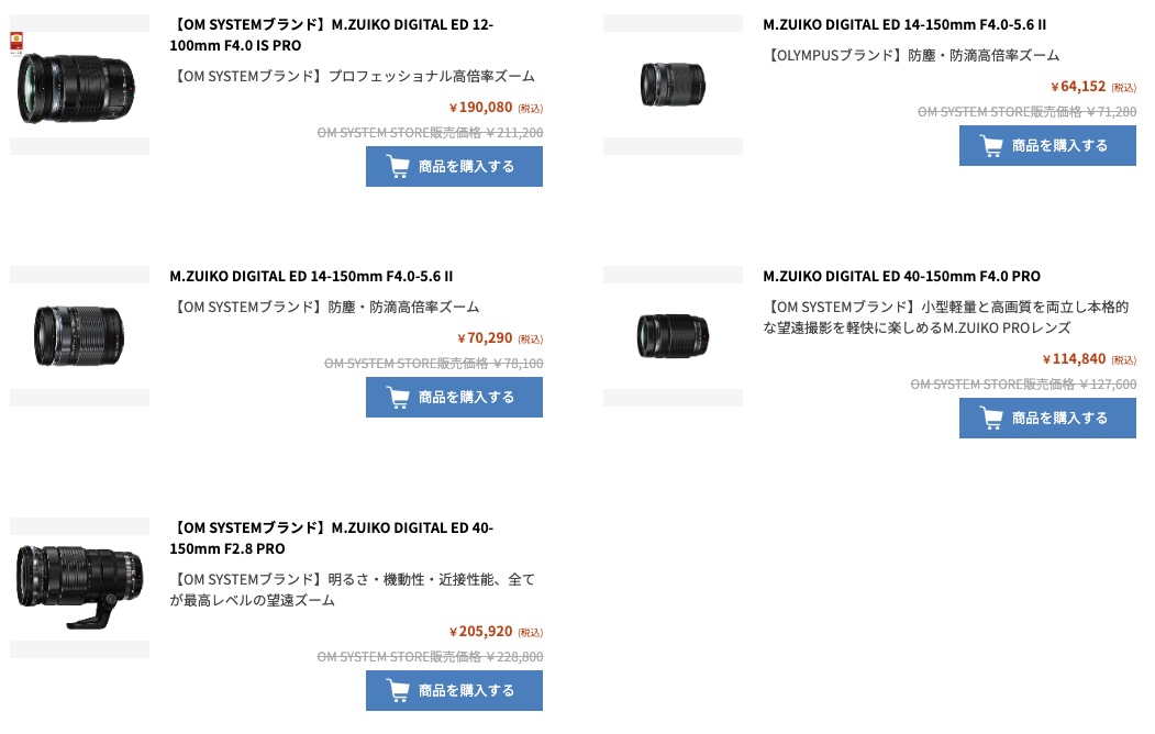 おすすめズームレンズ クーポン対象商品一覧: | OM Digital Solutions